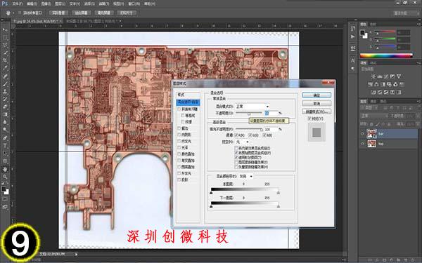 9.將層頂設(shè)置為半透明狀態(tài),查看頂層和底層的過孔是否對準(zhǔn),頂?shù)變蓪拥倪^孔對準(zhǔn)即可。